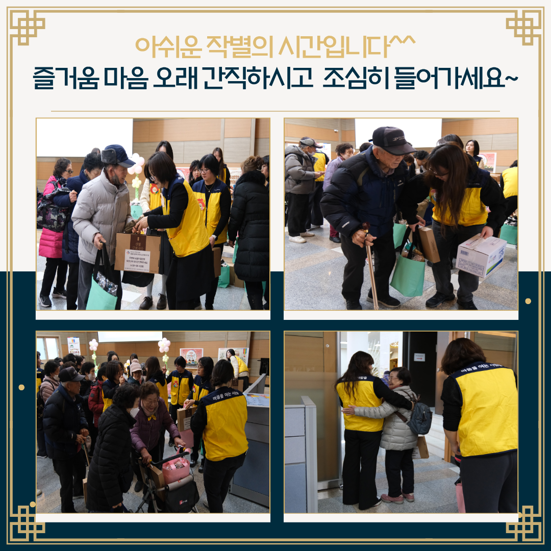 이번 행사는 정서적 지지와 따뜻한 나눔을 전하고자 마련되었으며, 어르신들께 즐겁고 온기를 전하는 뜻깊은 시간이 되었습니다.