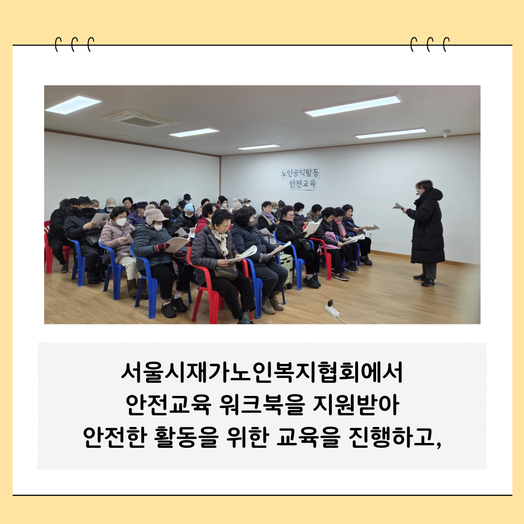 2026년 1월부터 3월까지 노인공익활동 참여 어르신들을 대상으로 안전교육을 실시하였습니다.