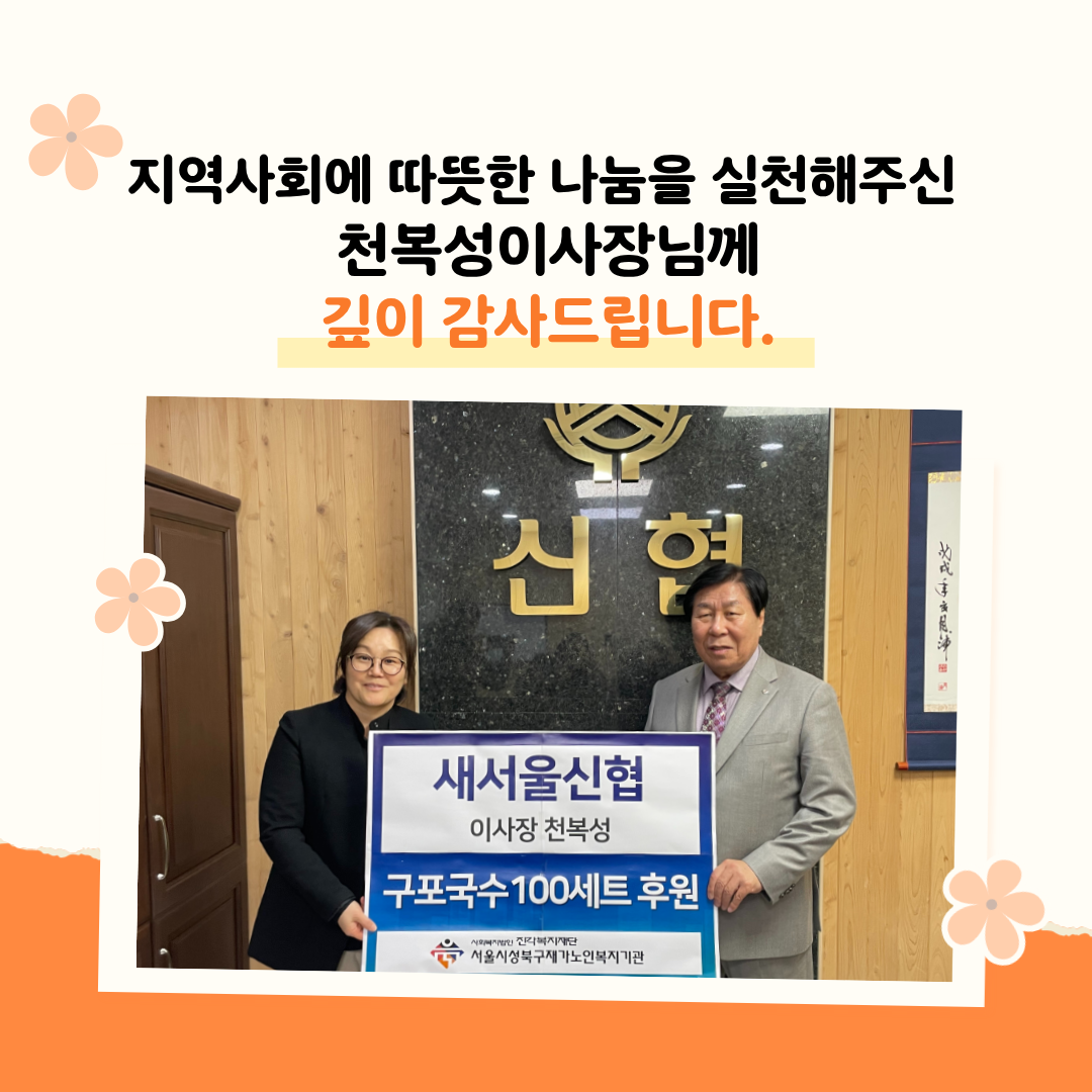 새서울신협 설맞이 '신협구포국수 100세트' 후원