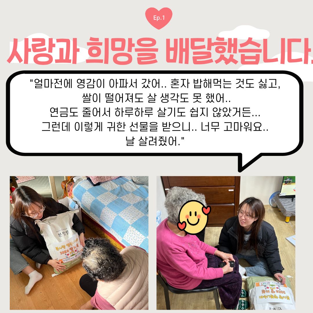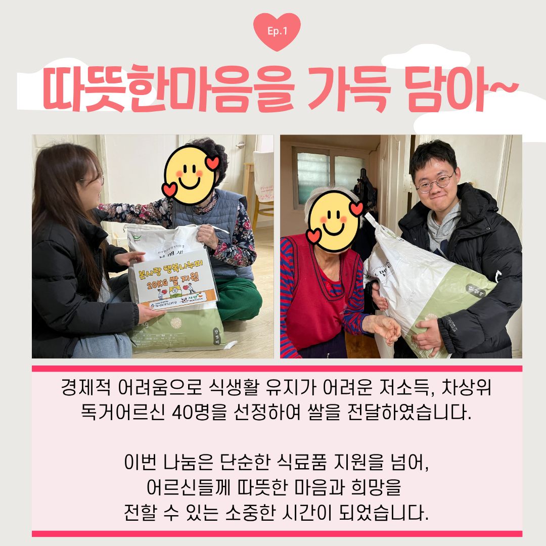 이번 나눔은 단순한 식료품 지원을 넘어 어르신들께 따뜻한 마음과 희망을 전할 수 있는 소중한 시간이되었습니다.